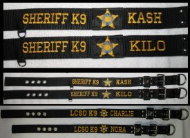 • EMBROIDERY such as POLICE K9/K-9, department name, K9’s name can be added to any collar and in any color. You can also add your department’s/K9’s badge.